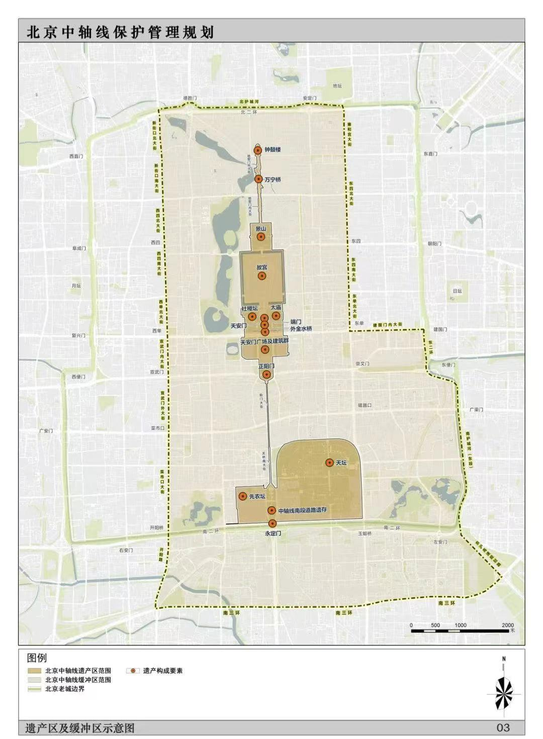 北京中轴线展现了古都历史文化发展的深厚底蕴,也关乎道德教化、风俗民情乃至社会发展等各个方面。近年来,北京市以中轴线申遗为抓手,推动老城整体保护和有机更新。北京中轴线串起了首都功能核心区3处世界遗产、11处全国重点文物保护单位、2处市级文物保护单位和缓冲区514处各级文物。因此对中轴线文化遗产进行考古发掘及展示,加强“城之源”“都之源”研究,从而构建文物和文化遗产的全域保护体系,是中轴线申遗所呈现的北京经验。