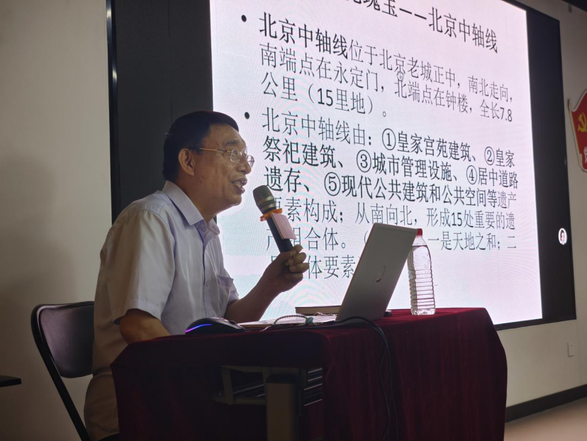 讲座现场李老师是北京中轴线研究领域的专家,北京市哲学社会科学规划办公室原副主任,研究员,北京史研究会原会长;长期从事北京历史文化研究,发表有关北京历史文化的文章100多篇,代表作有《魅力北京中轴线》《北京文脉》《皇都京韵——走进北京城》等,是北京市科普报告团优秀成员。此外,李老师曾在中央电视台《百家论坛》和《文明之旅》栏目中主讲“魅力北京城、韵律中轴线”“解密北京中轴线”“解密故宫”等专题内容,还曾以主讲嘉宾的身份参与北京卫视“最美中轴线”节目的录制。