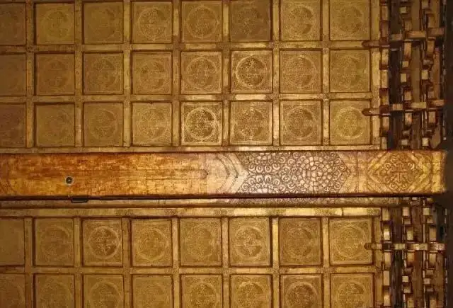 用金量代表着旋子彩画的等级,用金量越大,等级也就越高。浑金旋子彩画是等级最高的,全部的旋花、轮廓线条、纹样等皆贴金。这种彩画很少见,只有在太庙正殿的明间才可见。