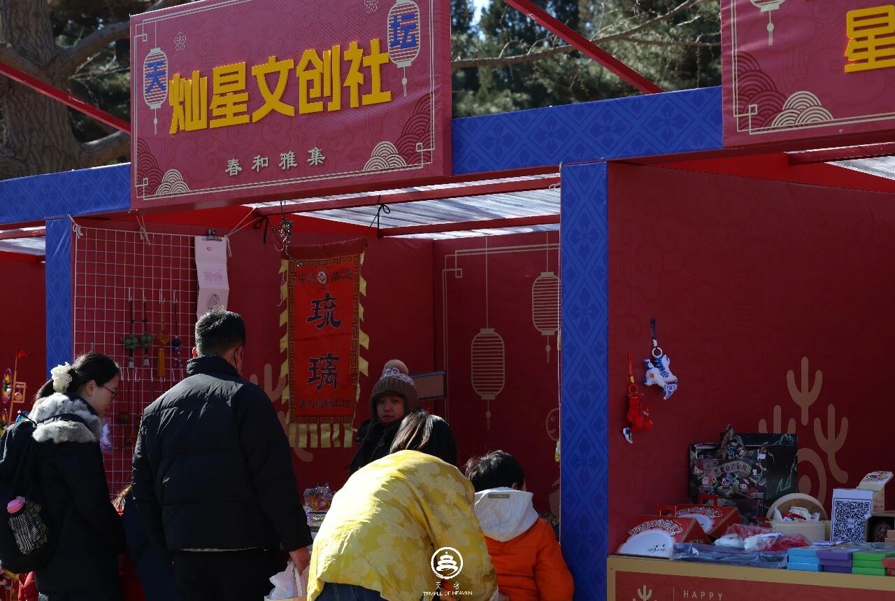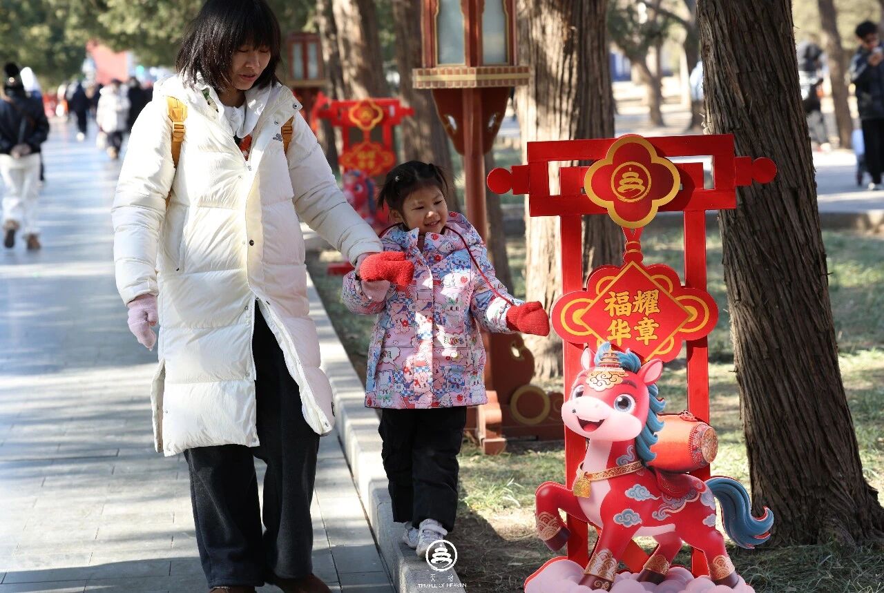 北二门的“春和雅集”文创市集精品荟萃,天坛文创精品与春节限定食品在此悉数登场;除此之外,公园还有多款特色文创产品新春上新。双环万寿亭藻井、马载鸿福两款冰箱贴持续走红之外,融合祈年殿建筑色彩与马年生肖文化的天坛祈福・软萌“福”字包挂重磅亮相!这款承载敬天祈福的美好愿景的吉祥好物,为新春送上吉祥期许,伴你一路马上来福。