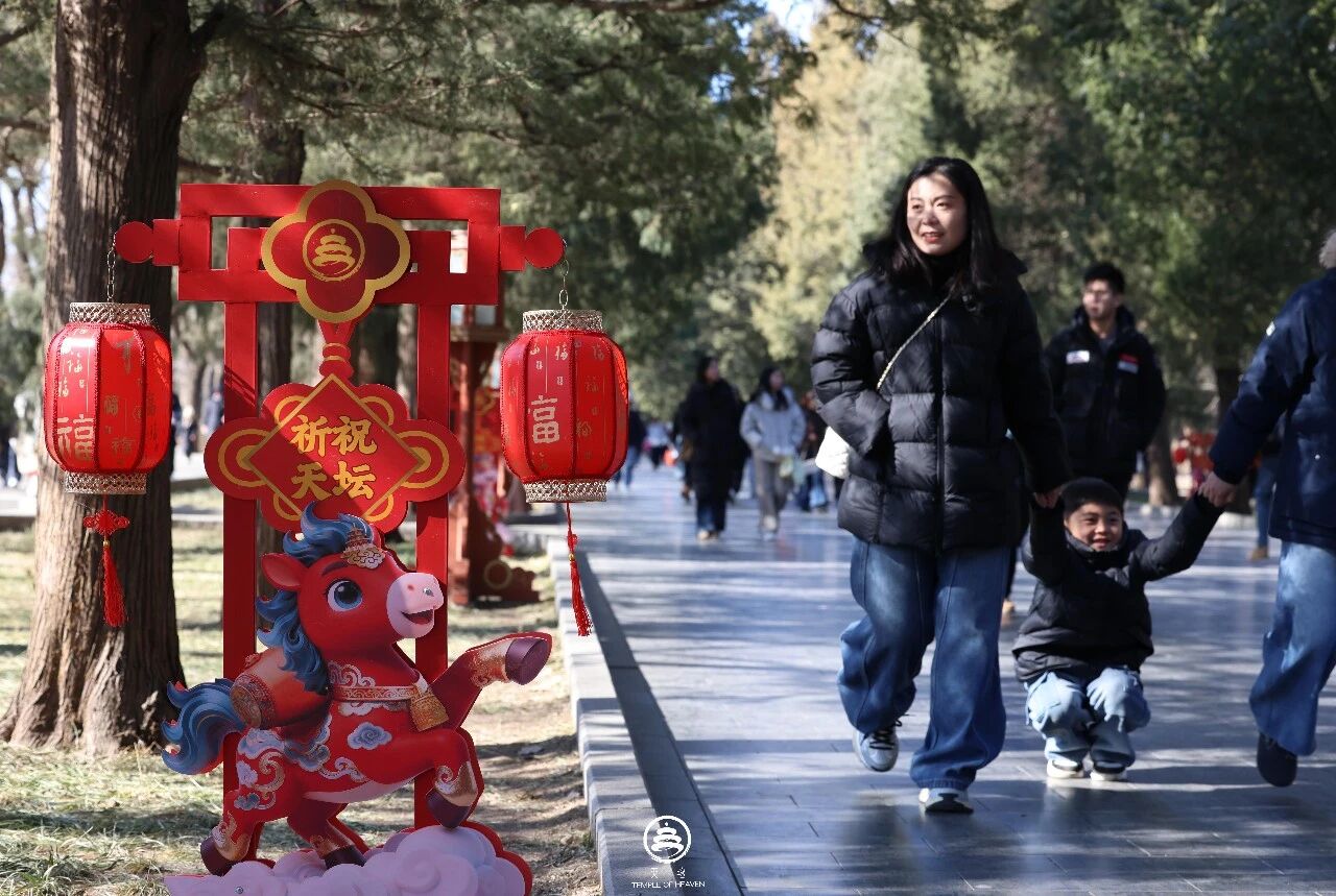 放眼全园六处景观小品,北门外广场东侧“瑞马锦卷 新春宏福”以祈年殿为核心,一展画卷缠绵着马年吉庆纹样;东门外“福马迎春 万象更新”小品则巧出心裁,立体剪纸风格搭配着绮丽灯光,交织出独特的沉浸式空间。若是走到西二门内,融合了编钟、笛、箫等中和韶乐乐器的景观更是满满“神乐署”风,暖意盈盈的新春氛围簇拥着这里,预示着天坛在马年春节将至时,迎来的头一件重磅盛事!
