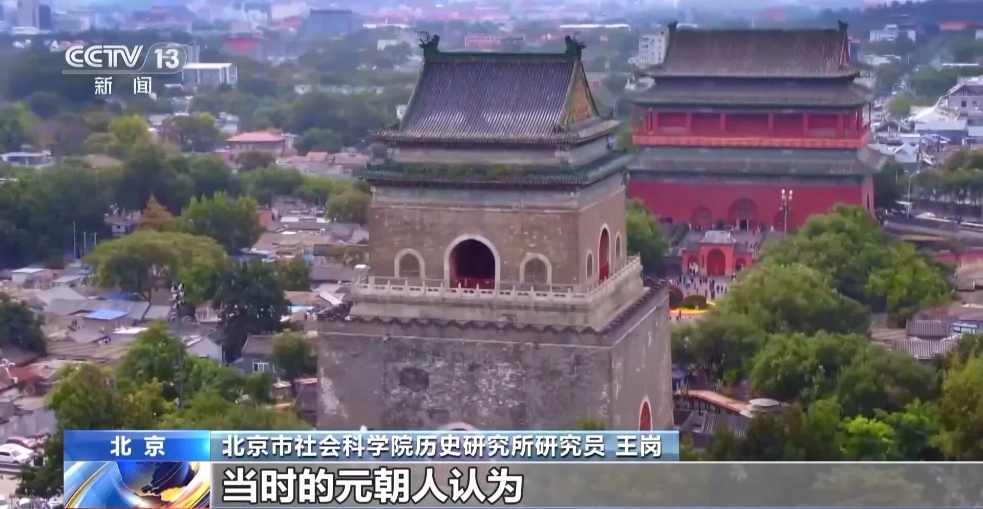 北京市社会科学院历史研究所研究员 王岗:元朝人认为,钟鼓楼的位置比皇城的位置还重要,所以就把这个钟鼓楼放在了全城的中心位,而把这个皇城,放到了钟鼓楼的南面。到了明清时期都在沿用,就形成了咱们今天能够见到的北京中轴线的模式。