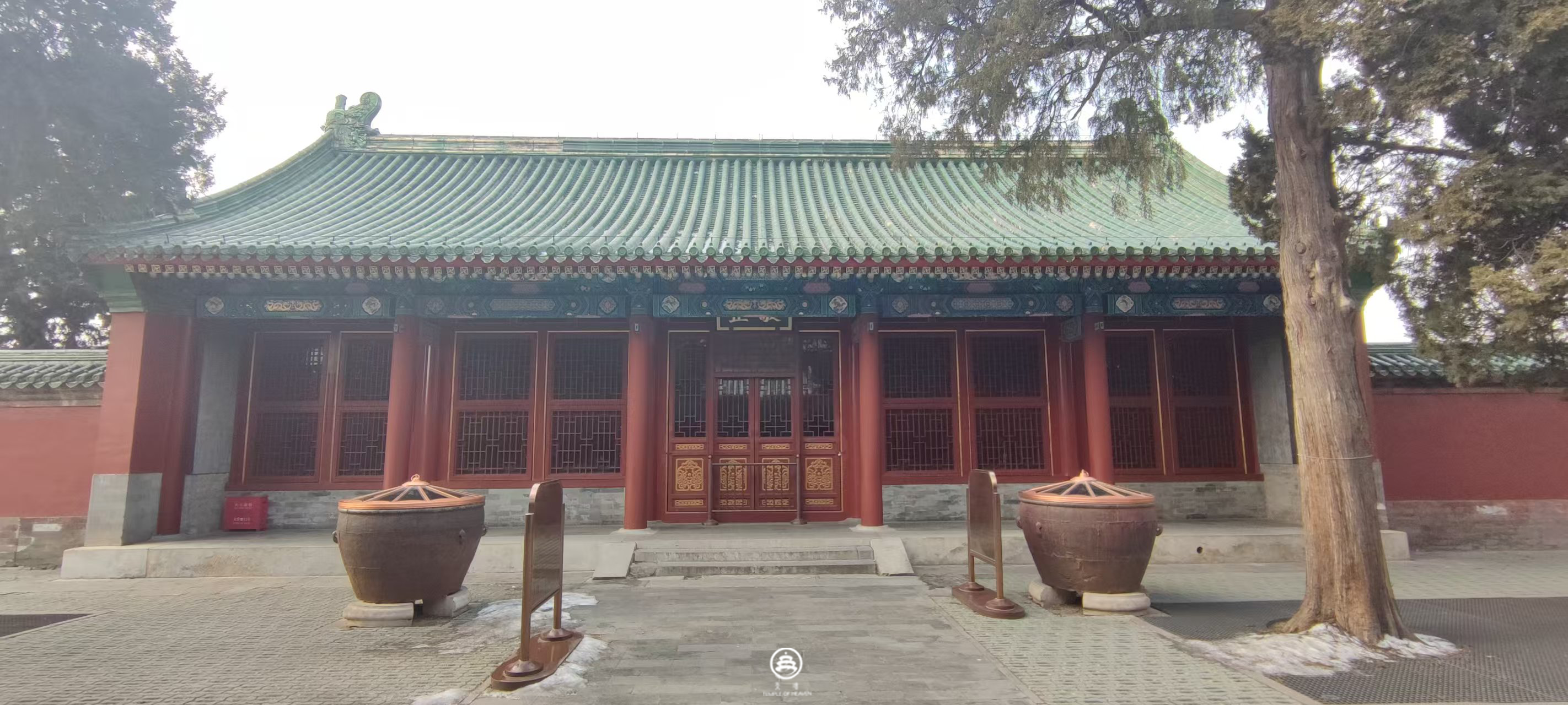 万物颜色俱收藏入冬,而斋宫梁枋之上青绿交织、墨线勾勒的彩画,依然在晴日之下熠熠生辉,静诉着敬天法祖的古老哲思。