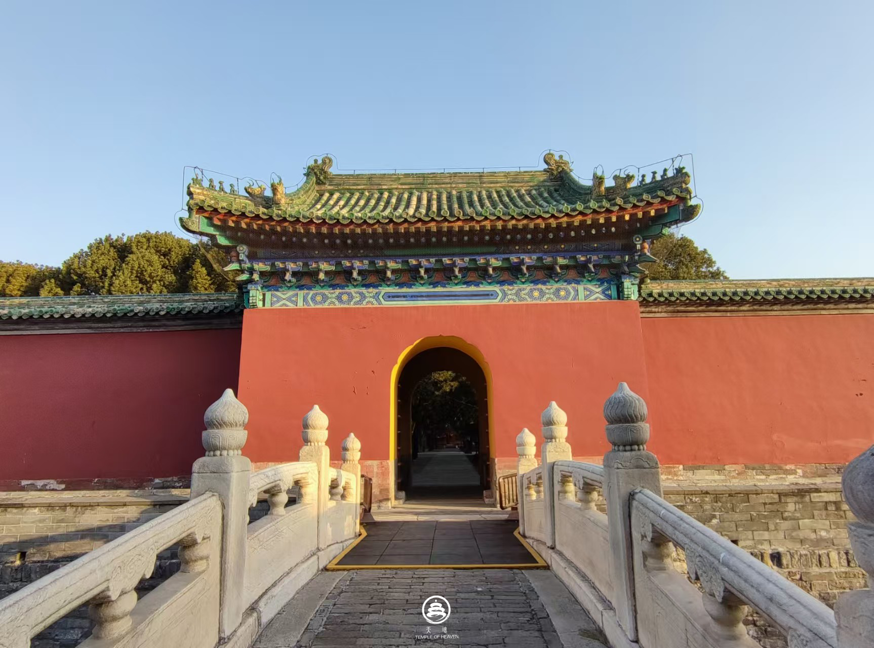 至于值守房、钟楼、御河河廊等附属建筑,则一律使用雅伍墨旋子彩画,以青、绿、黑为主色调,不施金饰,素雅古朴,突出表现祭祀区域的肃穆氛围,与主体建筑形成等级上的遥相呼应。