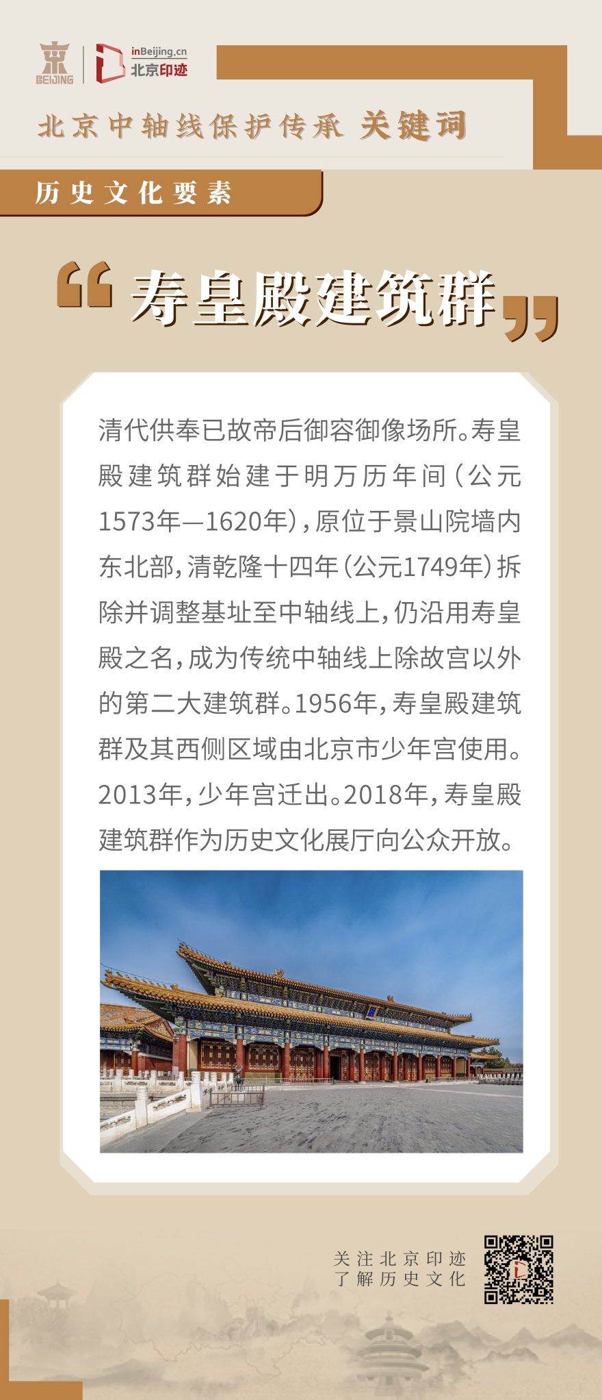 寿皇殿作为北京中轴线上规模仅次于故宫的古建筑群,不仅以其宏伟壮观的古代建筑艺术吸引世人,更以其独特的历史文化价值,成为北京中轴线文化遗产的重要组成部分。
