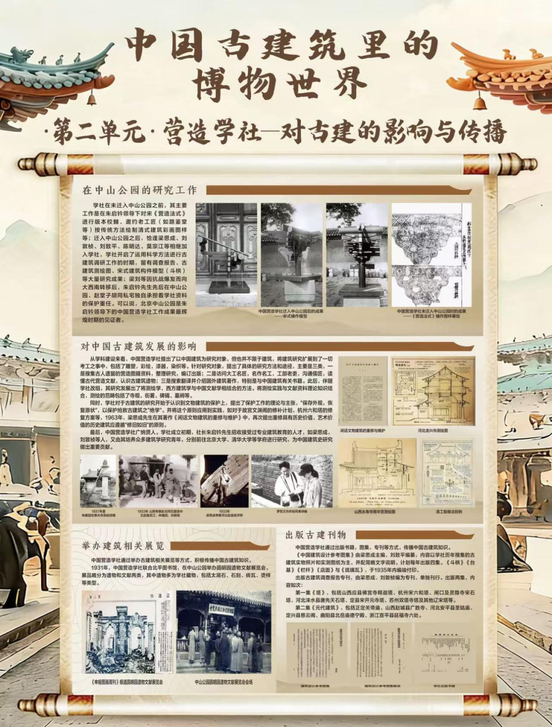 ②:通过主题展板,深度解读古建筑的历史脉络、与保暖智慧及美学精髓。